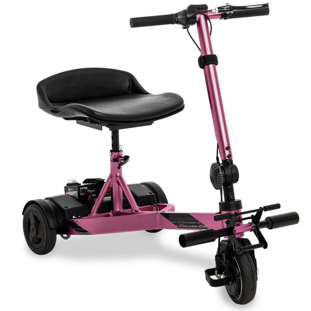 Traveling anywhere is now easy with this quick fold down, fit in your trunk product. The iCruise was designed to fit into the trunk of any vehicle and fits easily into many areas for storage. Equipped with the lithium-ion battery pack which is airline and travel safe! This portable lightweight travel solution weighs in at only 46.5 lbs. and that is inclusive of the batteries. Equipped with both a manual hand brake and supplemental foot brake, the iCruise delivers a safe and comfortable ride!